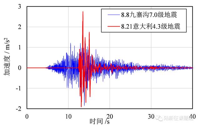 圖3 8.8九寨溝7.0級地震和8.21意大利4.3級地震震中附近地面運動對比