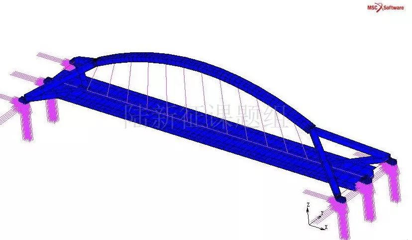根據此前橋梁倒塌模擬經驗(參考資料1:有限元+虛擬現實=橋梁倒塌的過程反演分析與場景再現,參考資料2:6月14日河源東江大橋垮塌事故有限元模擬及分析),采用通用有限元軟件MSC.Marc建立了該橋的三維有限元模型,以模擬此次倒塌事故,如下圖所示。