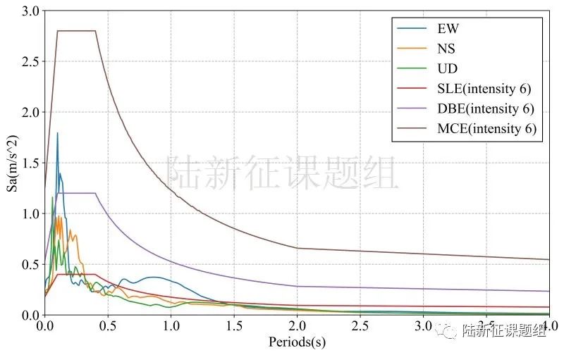 選取圖8所示朱伯龍等開展的五層簡易砌體結(jié)構(gòu)足尺試驗(yàn)?zāi)P停斎?5LHT臺站記錄,分析結(jié)果表明該結(jié)構(gòu)都將處于完好狀態(tài)。(朱伯龍等,上海五層砌塊試驗(yàn)樓抗震能力分析,同濟(jì)大學(xué)學(xué)報,1981,4,7-14.)