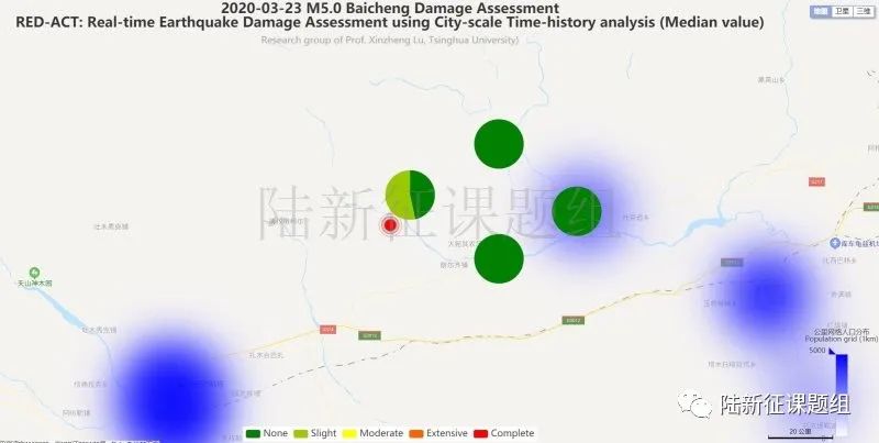 圖320200323新疆阿克蘇地區(qū)拜城縣5.0級地震不同臺站地震記錄破壞力分布圖