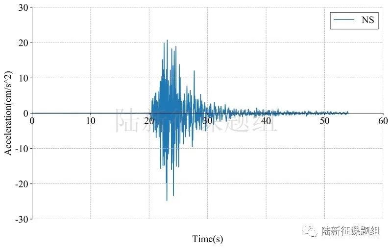 65LHT記錄臺站位置北緯41.84度,東經(jīng)81.19度,記錄到水平向地震動峰值加速度為34.2cm/s/s,豎直向地震動峰值加速度為21.9cm/s/s。該地震動如圖1、圖2所示。