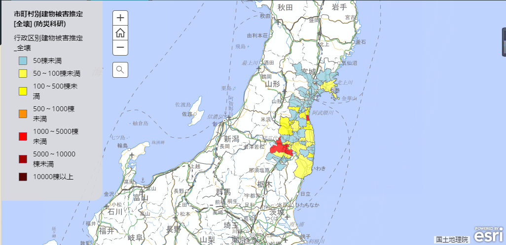 圖4 日本防災(zāi)研究所給出的各行政區(qū)建筑破壞估算