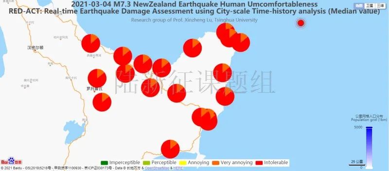 圖5 20210304新西蘭北島海域7.3級(jí)地震不同臺(tái)站地震記錄人員加速度感受分布圖