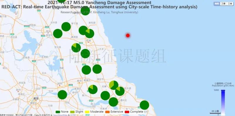 圖4 20211117江蘇鹽城市大豐區(qū)海域5.0級地震不同臺站地震記錄破壞力分布圖