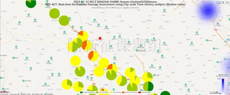 圖5 20220112青海海北州門源縣5.2級地震不同臺站地震記錄人員加速度感受分布圖