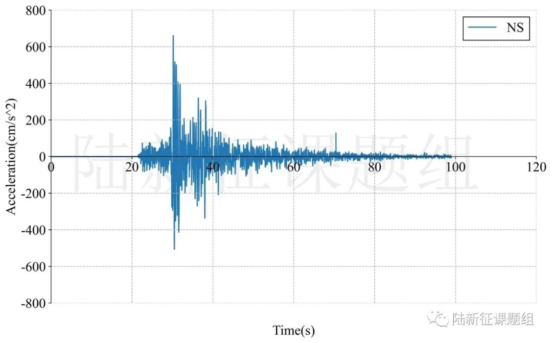選取圖8所示朱伯龍等開(kāi)展的五層簡(jiǎn)易砌體結(jié)構(gòu)足尺試驗(yàn)?zāi)P停斎氲湫团_(tái)站記錄,分析結(jié)果表明該結(jié)構(gòu)將處于嚴(yán)重破壞狀態(tài)。(朱伯龍等,上海五層砌塊試驗(yàn)樓抗震能力分析,同濟(jì)大學(xué)學(xué)報(bào),1981,4,7-14.)