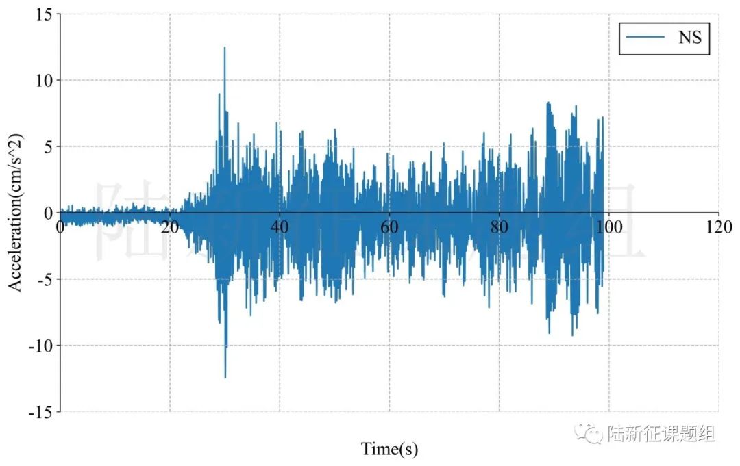 當地氣象局獲得的近場地震動如圖1所示,記錄到水平向地震動峰值加速度為501cm/s/s,豎直向地震動峰值加速度為476cm/s/s。由于沒有更具體的數據,所以不能進一步分析。