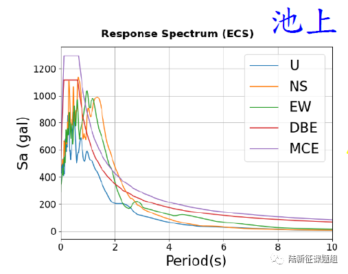 此前我們給出了花蓮6.9級地震引起的福建等地區(qū)的破壞力分析結(jié)果,本報告進(jìn)一步給出震中附近的分析結(jié)果。基于《Reconnaissance Report on Seismic Damage Caused by Guanshan Earthquake and Chihshang Earthquake (third edition, v3.0)》(以下簡稱《簡報》),選取最強(qiáng)的兩組地震動ECS和EYUL臺站記錄,如圖1和圖2所示。其中ECS臺站中長周期分量較強(qiáng),而EYUL臺站短周期分量較強(qiáng)。