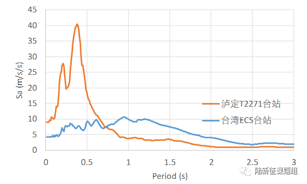 (b) 瀘定T2271臺站與臺灣EYUL臺站反應譜對比(EW分量)