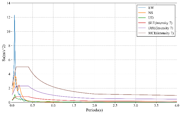 實測的儀器烈度雖然比通過震級來估算地面運動強度進步了不少,但是它畢竟把一個復雜的地面運動過程簡化成了一個峰值。因此,在某些情況下峰值可能就不能很好的反映世界的真實情況。而彈塑性時程分析把完整的時程記錄輸入到對象結構中,可以更好地考慮地震動的時域、頻域各特性。