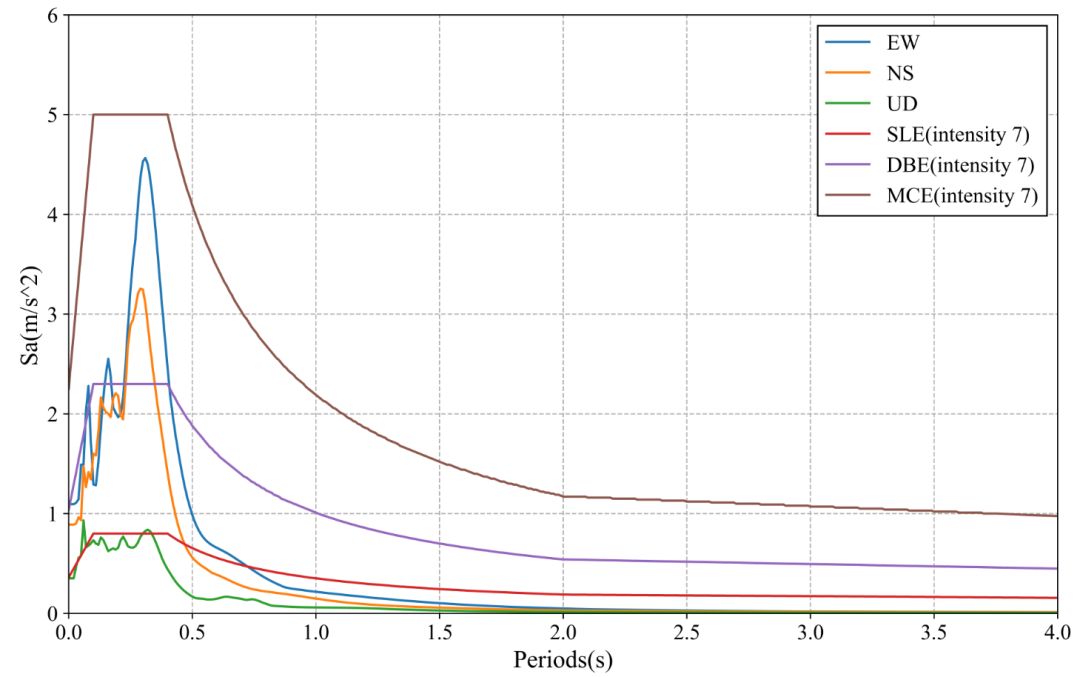 圖2 W3605臺站記錄反應譜