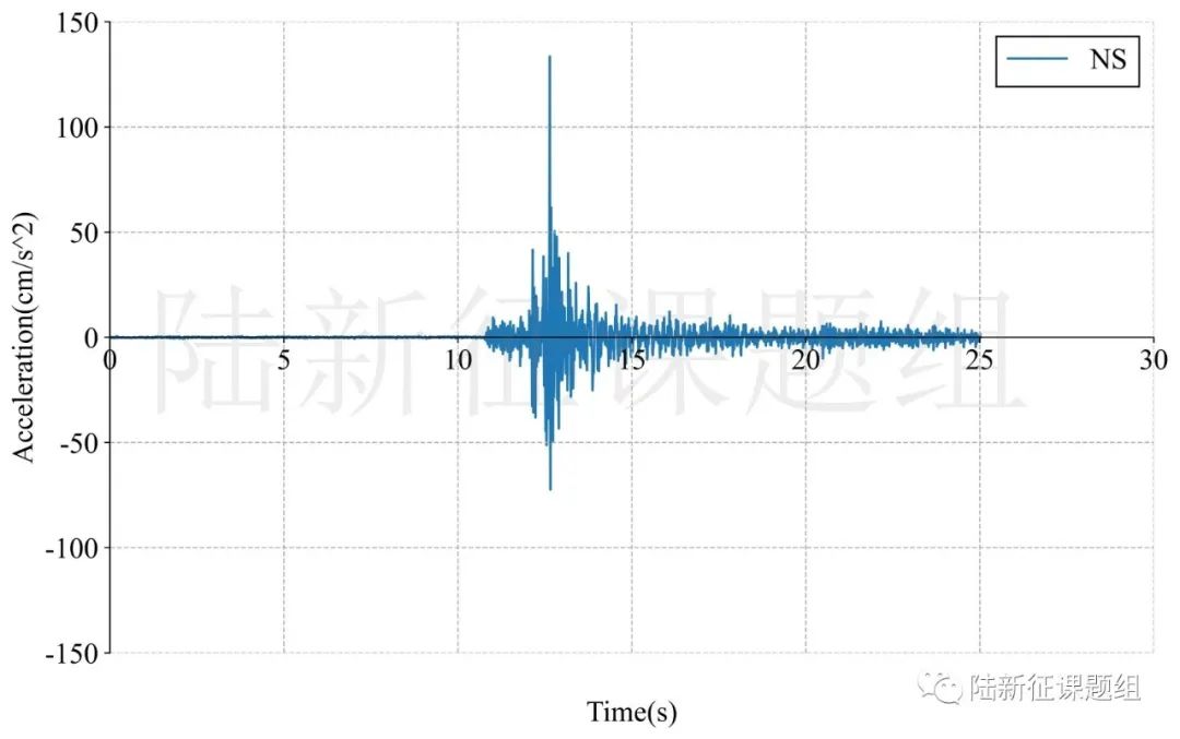 SH.O0001典型臺站位置北緯31.15度,東經121.1度,記錄到水平向地震動峰值加速度為134 cm/s/s,豎直向地震動峰值加速度為39 cm/s/s。該地震動及反應譜如圖1、圖2所示。