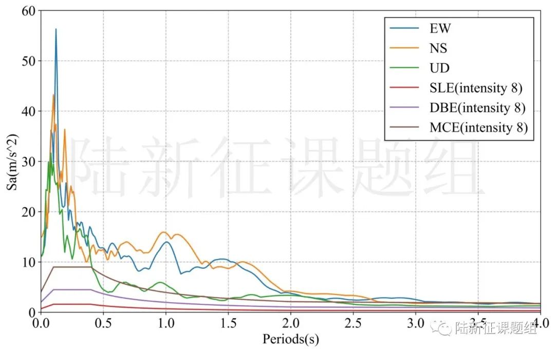 ISK003典型臺站位置北緯37.3924度,東經136.9080度,記錄到水平向地震動峰值加速度為1632 cm/s/s。該地震動及反應譜如圖1、圖2所示。